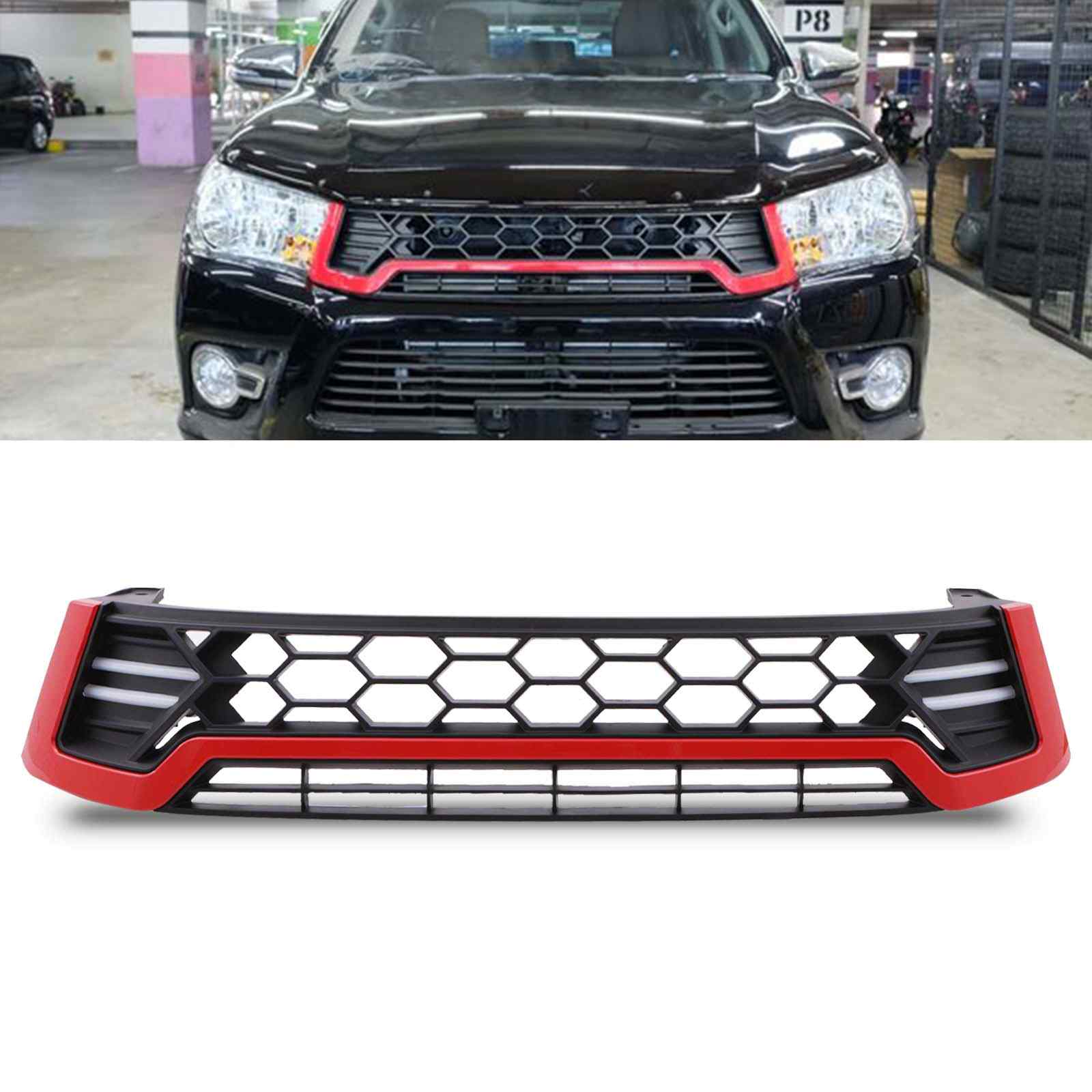Toyota Hilux Revo 15+ Black & Red Honeycomb Led Grille