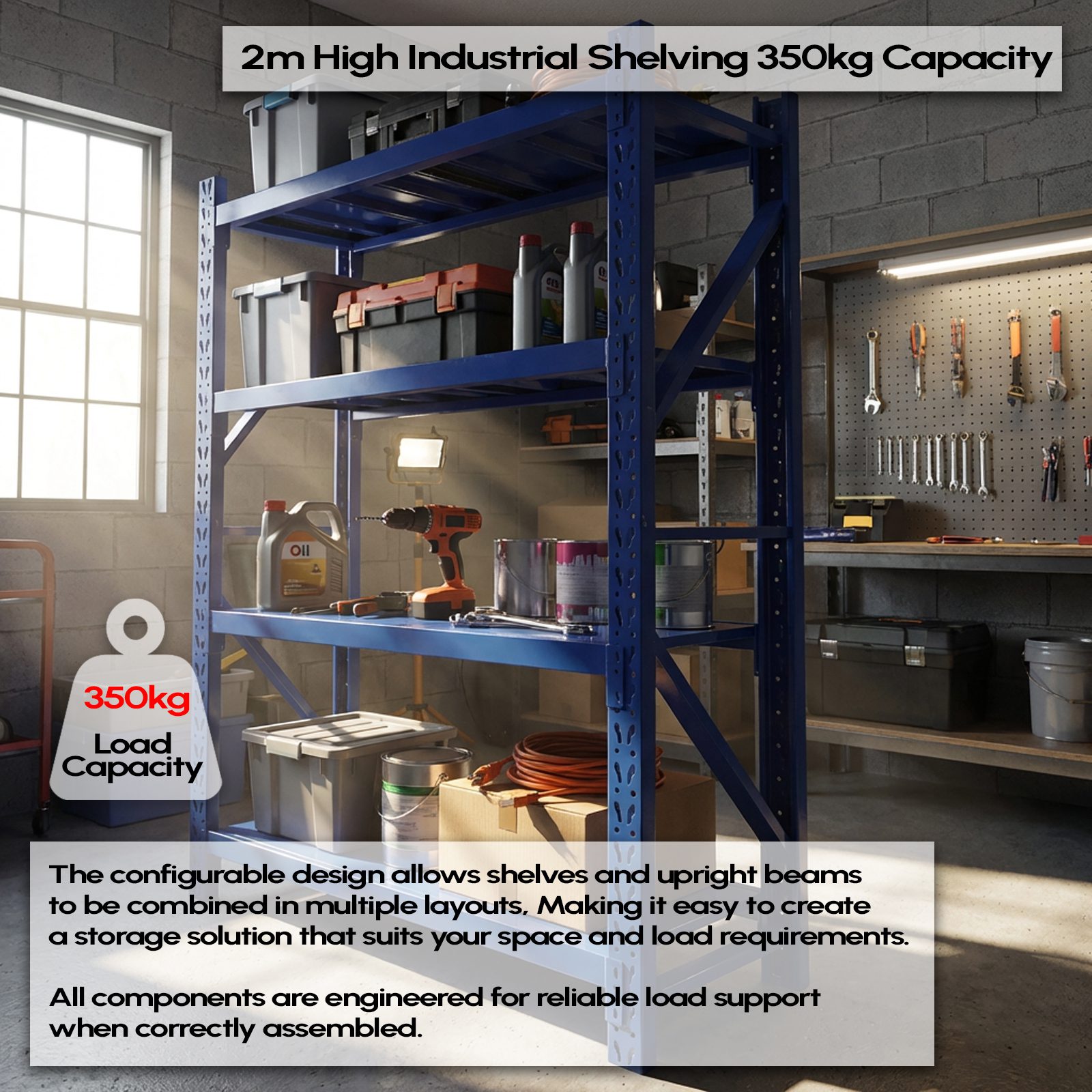 • Load Capacity: 350kg per shelf