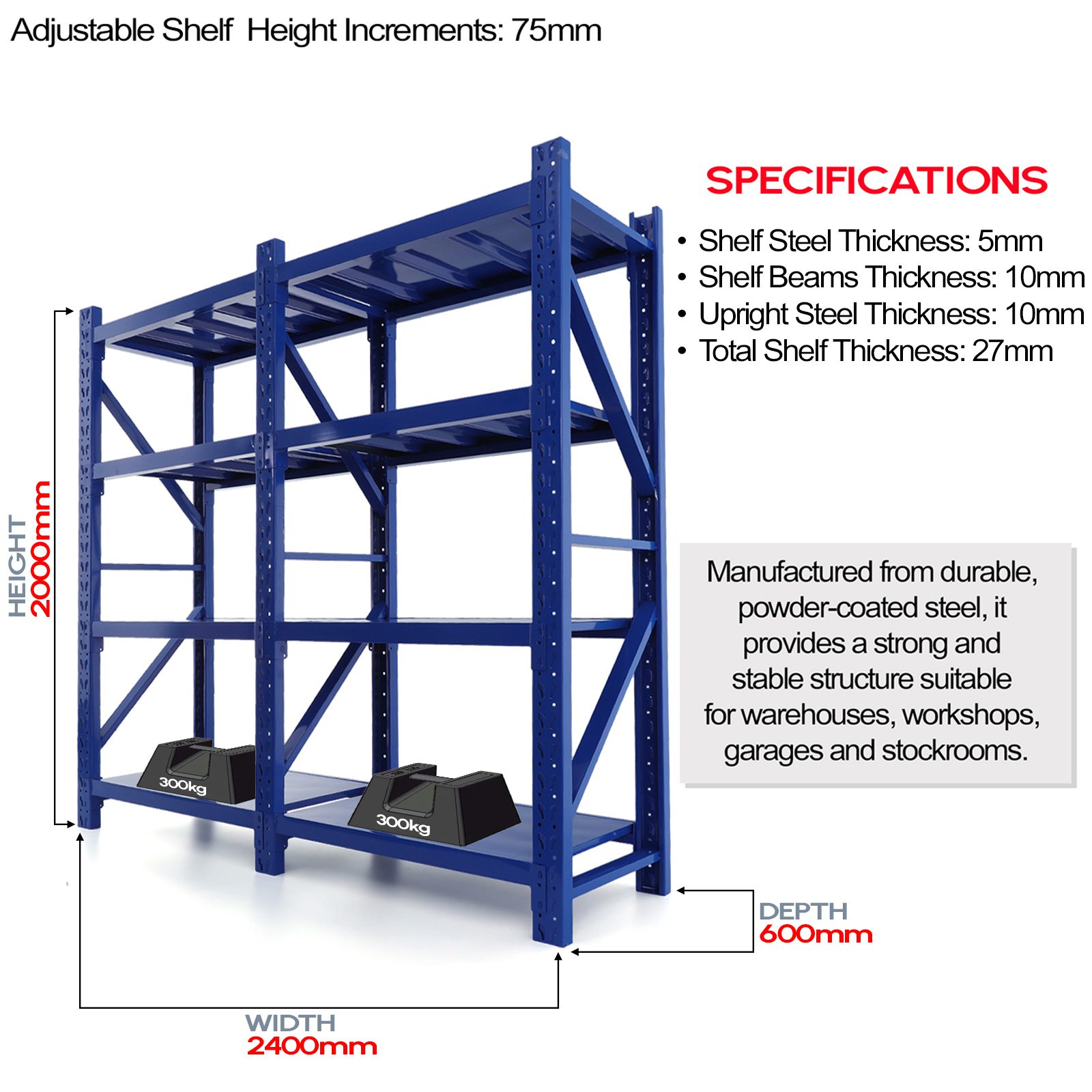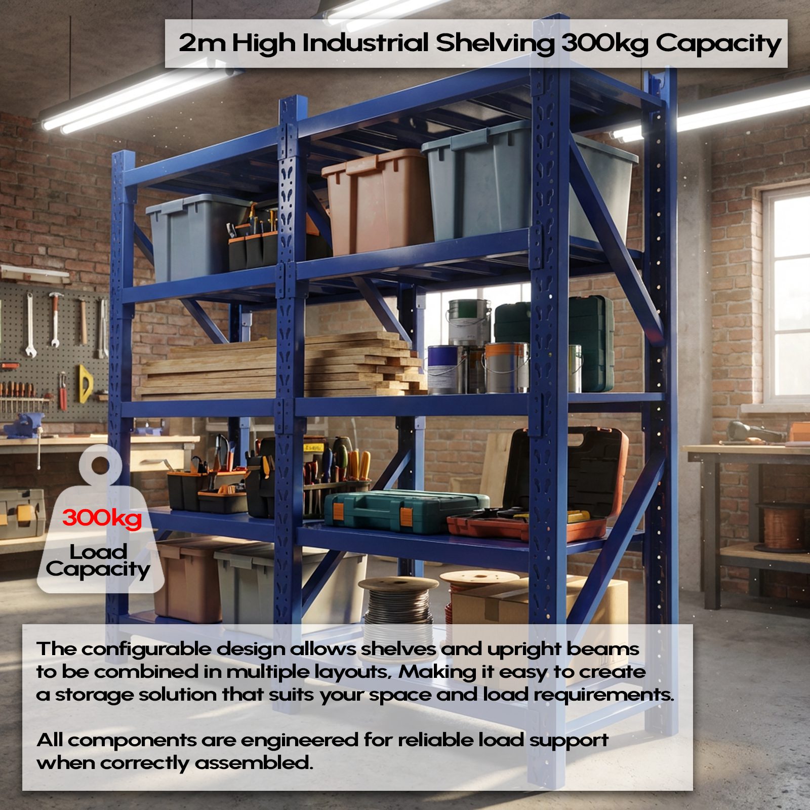 • Load Capacity: 300kg per shelf